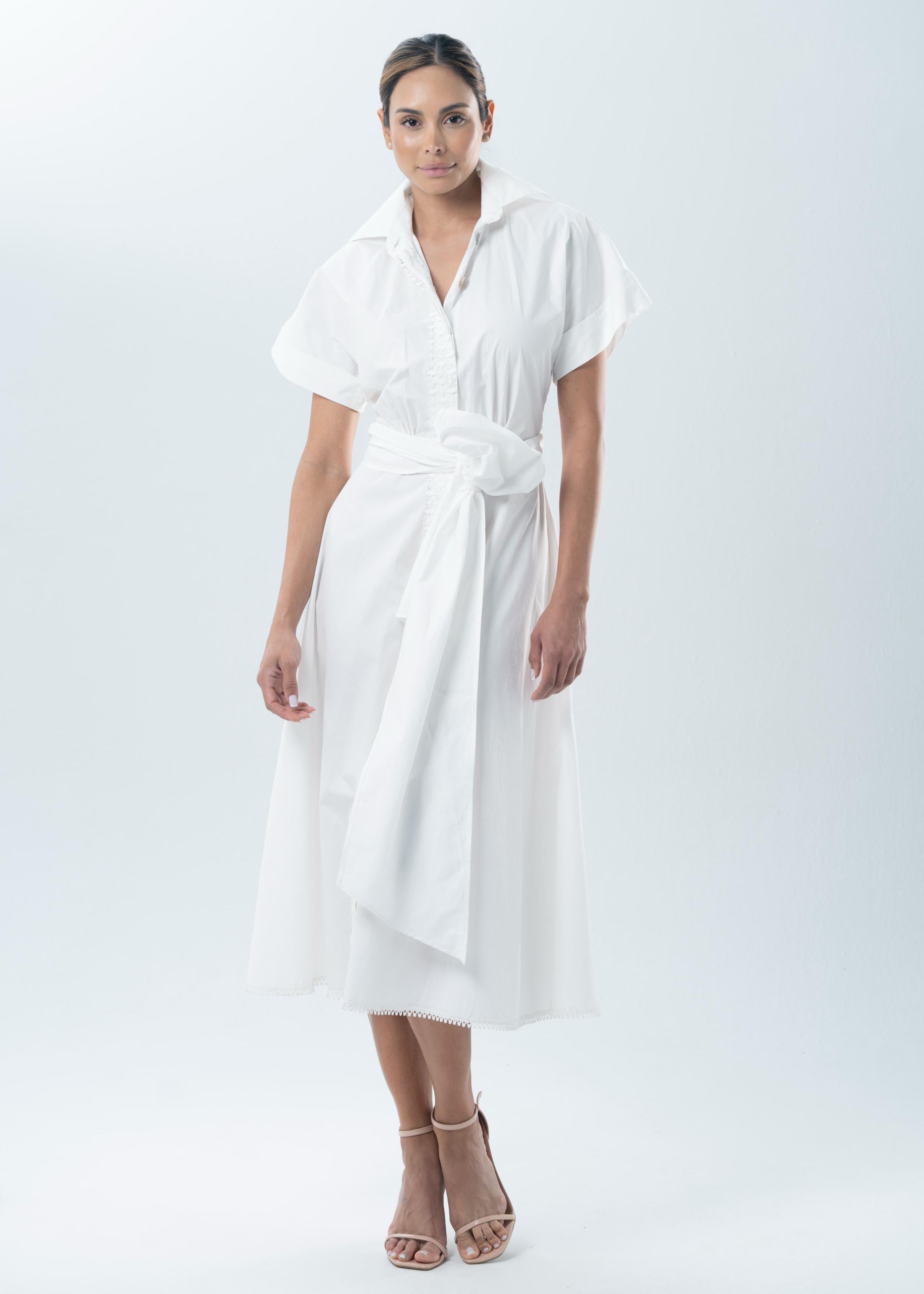 El vestido camisero un clásico de la temporada y en algodón aún más, llevarlo blanco y con detalles que verán elegante, femenina y clásica. Un vestido perfecto para todas las ocasiones de uso.
